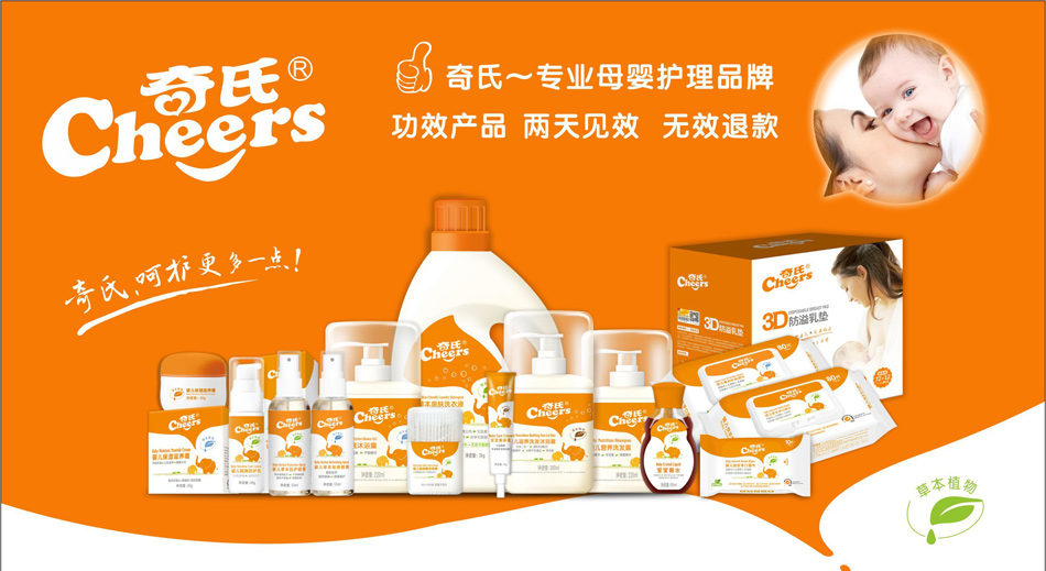 奇氏(CHEERS)---南京舒科生物科技有限公司旗下核心品牌,奇氏品牌诞生于2011年,注册商标。以“奇氏,呵护更多一点!”为核心经营理念,以亲肤弱酸性与草本植物精萃为研发原则,研制出一系列安全、健康、优质的母婴专用护理产品。面对竞争日益激烈的市场环境,奇氏稳扎稳打,步步为营!精根细作苏皖基地市场。从最初的一个单品到目前的八大系列50余支单品,奇氏已逐步成为年轻妈妈们熟知和信赖的专业母婴护理品牌。 奇氏产品生产基地拥有7200平方米的GMP标准生产厂房,九条先进的灌装生产流水线,完全德国进口的乳化设备和德国进口空气压缩机,意大利二级反渗透纯水装置,美国中央空调净化系统等;拥有世界先进的生产工艺和严格的检测系统,拥有严格的生产管理和苛刻的质量保证体系。 奇氏产品追求安全、亲近天然、温和身心。每款产品精研无泪配方,确保安全低敏无刺激,不含激素、不含矿物油、不含人工色素及化学香精、不产生抗药性和依耐性,杜绝外界侵害。 奇氏,呵护更多一点!