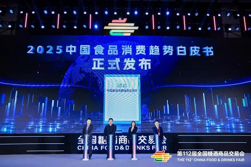 在接下来的《2025中国食品消费趋势白皮书》发布仪式上,全国糖酒会组委会代表携中国轻工企业投资发展协会副理事长刘旭、淘天集团M2C事业部副总裁宋涛、中粮营养健康研究院消费者与市场研究中心负责人、高级工程师卞祺共同上台,联合发布《2025中国食品消费趋势白皮书》。