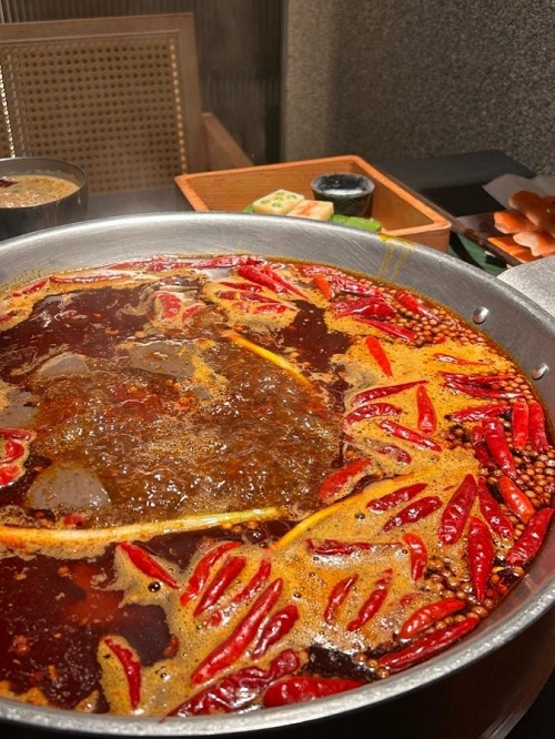 火锅:成都火锅以麻辣鲜香著称,锅底通常采用牛油、辣椒、花椒等多种香料熬制而成,涮上毛肚、鸭肠、牛肉等食材,口感醇厚