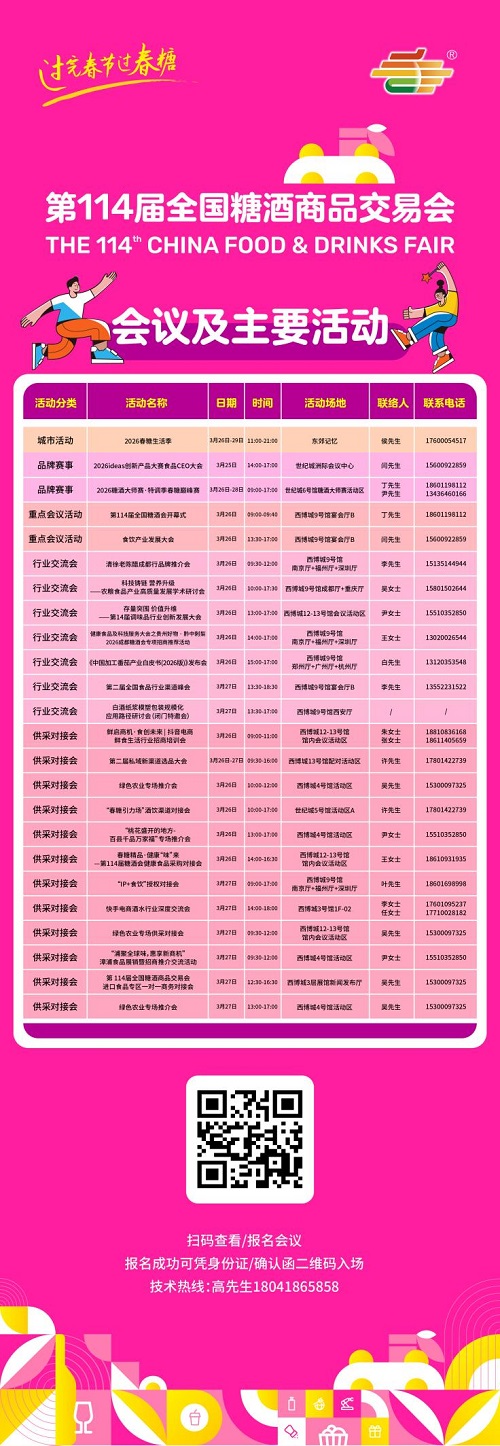 2026年是丙午马年,也是“十五五”开局之年。作为开年首个行业盛会,第114届全国糖酒会以“过完春节过春糖”的昂扬姿态,精准把握产业脉搏与城市节奏,为全年消费市场打响第一枪。32.5万平方米展馆,6600+家全球企业齐聚成都——来春糖,就是抢抓新机遇,跑出开门红。