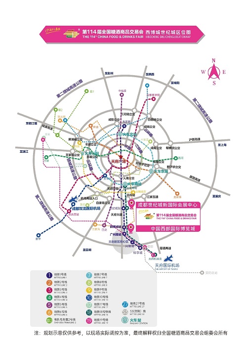 第114届全国糖酒商品交易会将于2026年3月26日至3月28日在中国西部国际博览城国际展览展示中心(以下简称西博城)、成都世纪城新国际展览中心(以下简称世纪城)举办,展览面积32万平方米。开展期间,预计参展人数较多,展馆周边道路拥挤,停车位有限,建议您乘坐公共交通绿色出行,并尽量错峰观展。