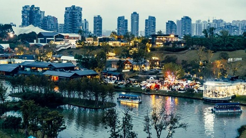 世纪城:环球中心停车区(乘车人乘坐摆渡车往返展馆)