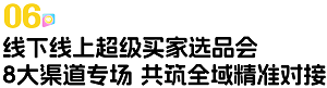 8大渠道专场选品会,呈现更为细分专业的对接服务,助力渠道与展商1v1精准对接,高效触达,把握展期黄金商机。
