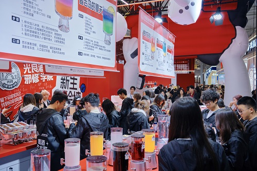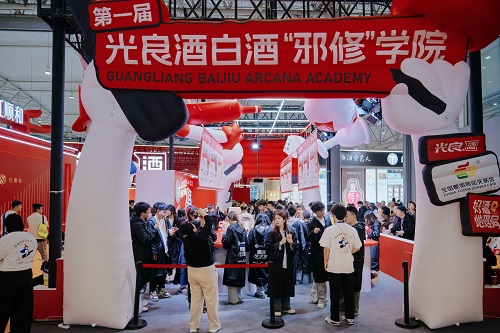 在光良酒白酒“邪修”学院现场,超1000名身着“魔法袍”的大学生涌入展位,沉迷“邪修”调酒,不停地拍照、打卡,洋溢的青春气息构成了一道独特的风景线。